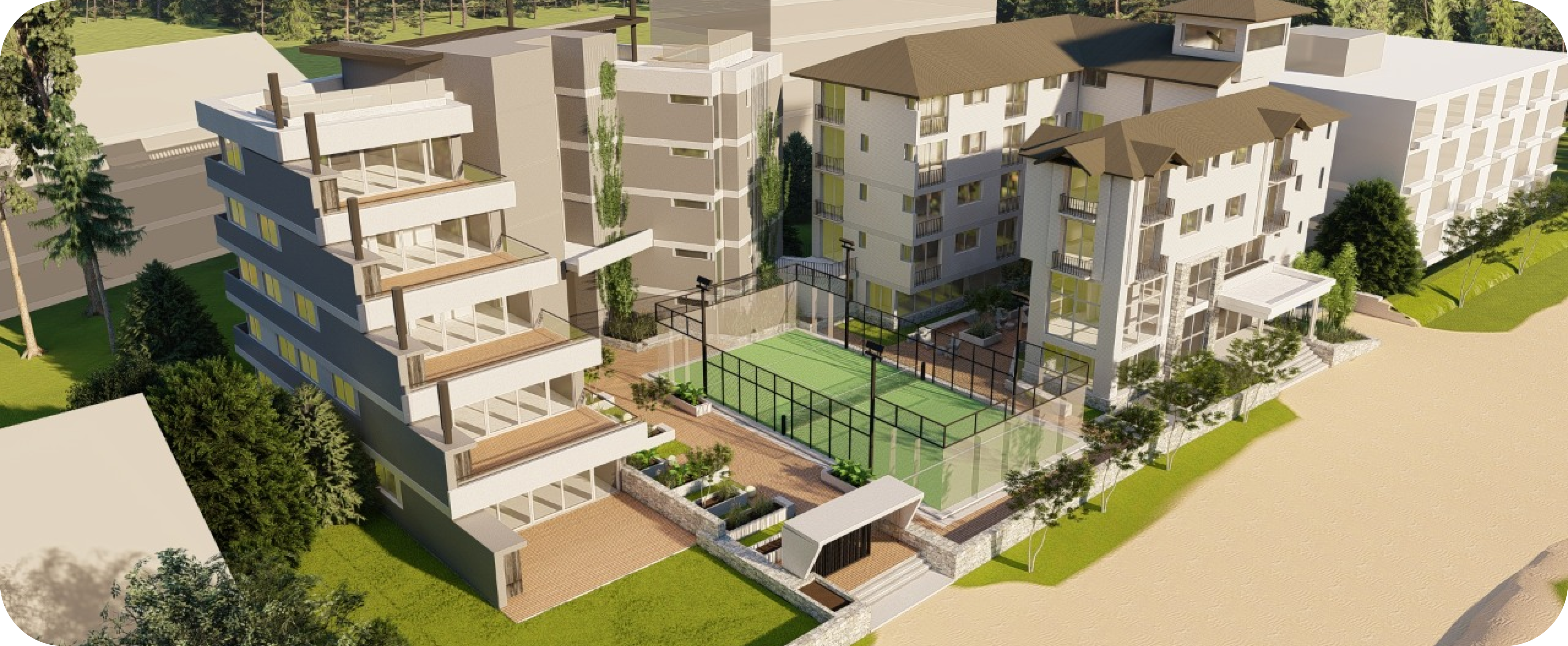 Creamos un espacio único ubicado a tan solo 150 metros del mar para disfrutar Pinamar en cortas o largas estadías. El complejo está compuesto por 50 amplias cocheras cubiertas, una piscina cubierta climatizada, piscina descubierta, Sauna seco, y jacuzzi, Sum con parrilla y cancha de Pádel.